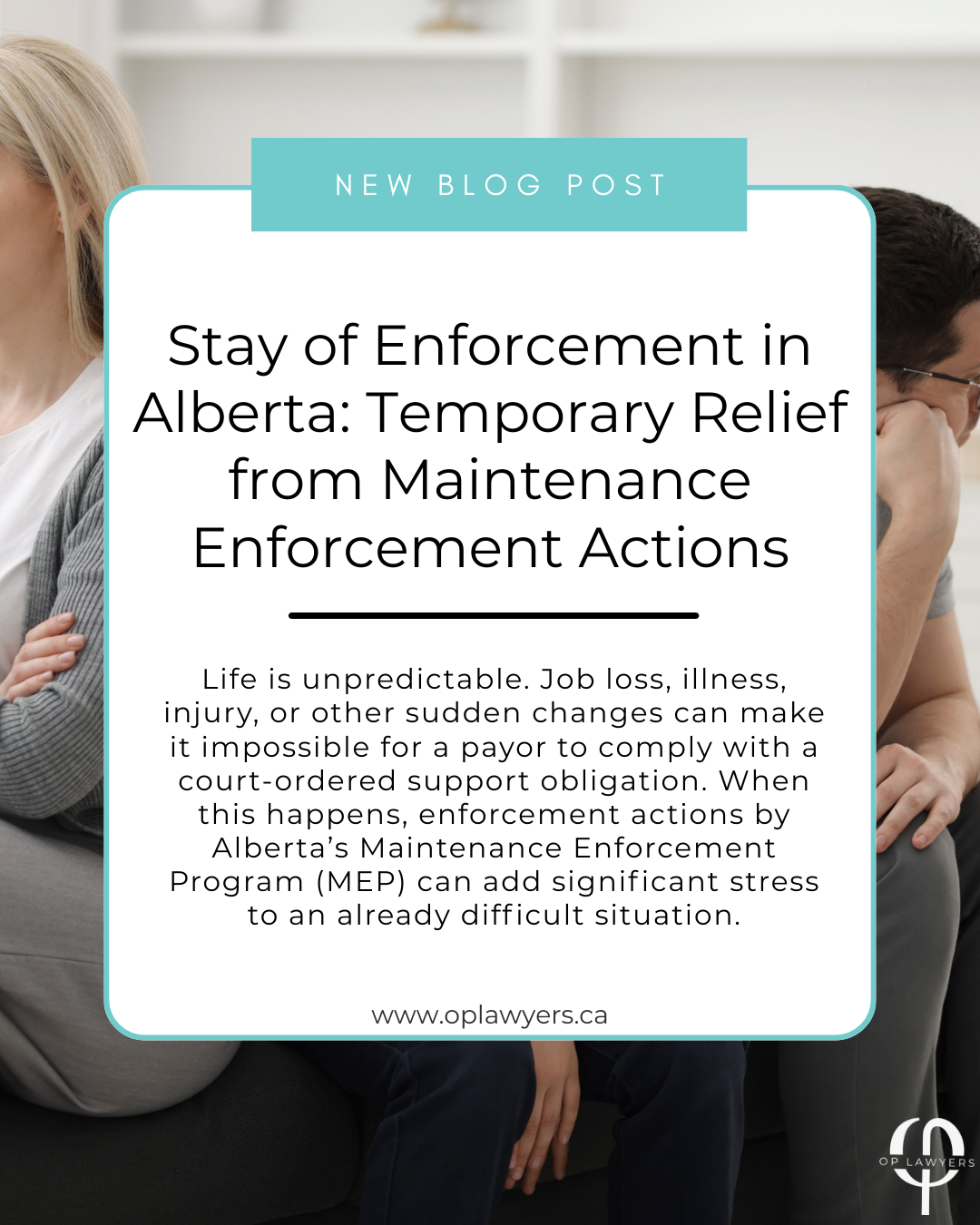 Support enforcement proceedings can have serious and immediate consequences, particularly when a payor is already experiencing financial or personal hardship. While Alberta’s Maintenance Enforcement Program plays an important role in ensuring that support obligations are met, the law also recognizes that circumstances can change in ways that make strict enforcement temporarily unfair or impractical. A stay of enforcement exists to address those situations—but it is a discretionary remedy, not an automatic one.